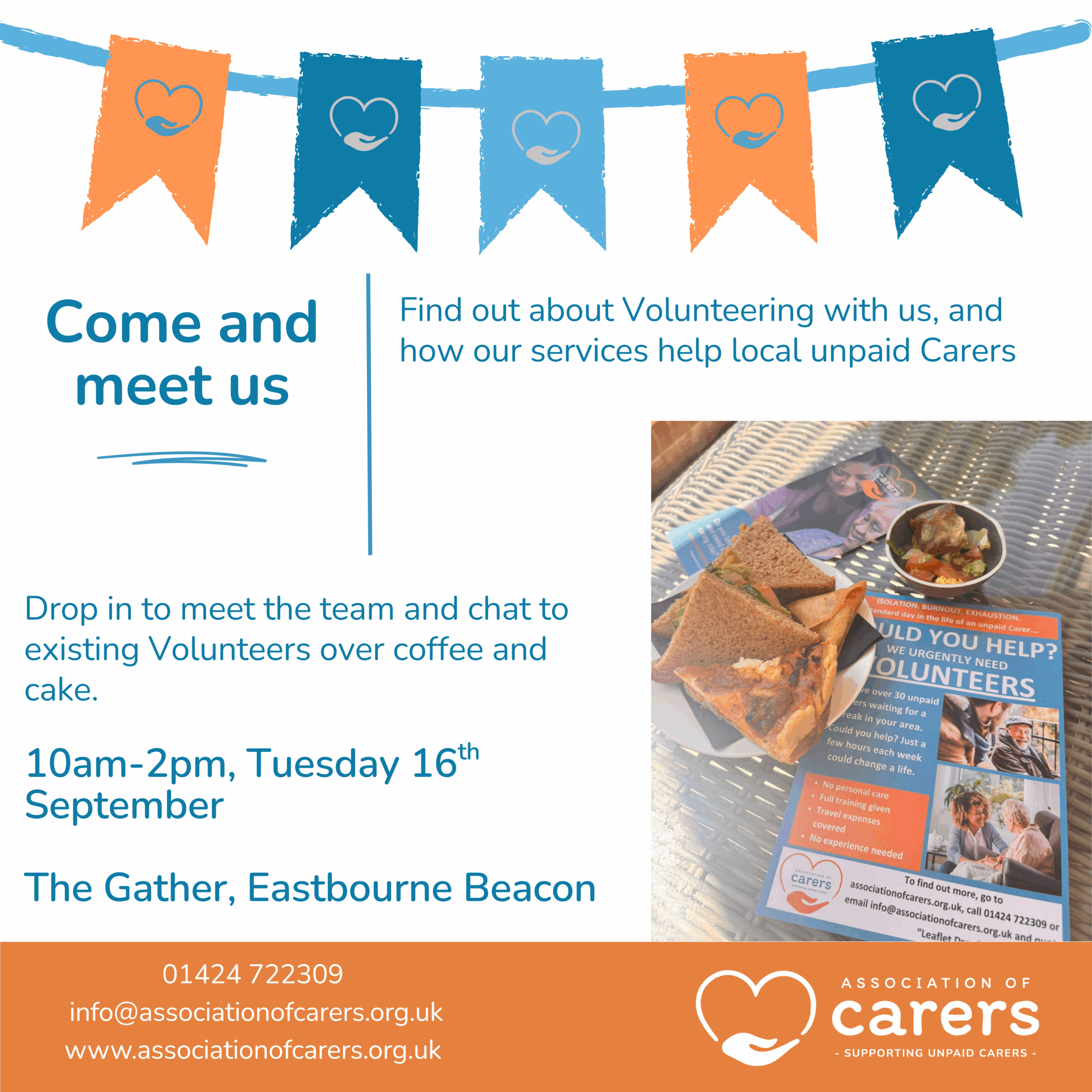 The Association of Carers warmly invites you to join an information day at The Gather on 16th September from 10am to 2pm. This is a relaxed drop-in event—please feel free to stop by to learn more about our services and explore volunteering opportunities. We look forward to welcoming you!
